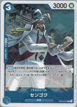 Effect: [On Play] You may trash 1 card from your hand: Look at 5 cards from the top of your deck; reveal up to 2 {Navy} type cards other than [Sengoku] and add them to your hand. Then, place the rest at the bottom of your deck in any order.