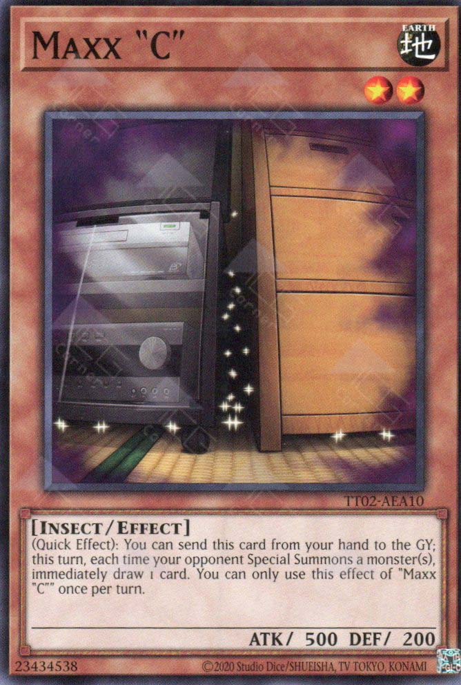 Description: During either player's turn: You can send this card from your hand to the Graveyard; this turn, each time your opponent Special Summons a monster(s), immediately draw 1 card. You can only use 1 "Maxx "C"" per turn.