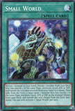 Description: Reveal 1 monster in your hand, choose 1 monster from your Deck that has exactly 1 of the same Type, Attribute, Level, ATK or DEF, and banish the revealed monster from your hand face-down. Then add, from the Deck to your hand, 1 monster that has exactly 1 of the same Type, Attribute, Level, ATK or DEF as the monster chosen from your Deck, and banish the card chosen from the Deck face-down. You can only activate 1 "Small World" per turn.